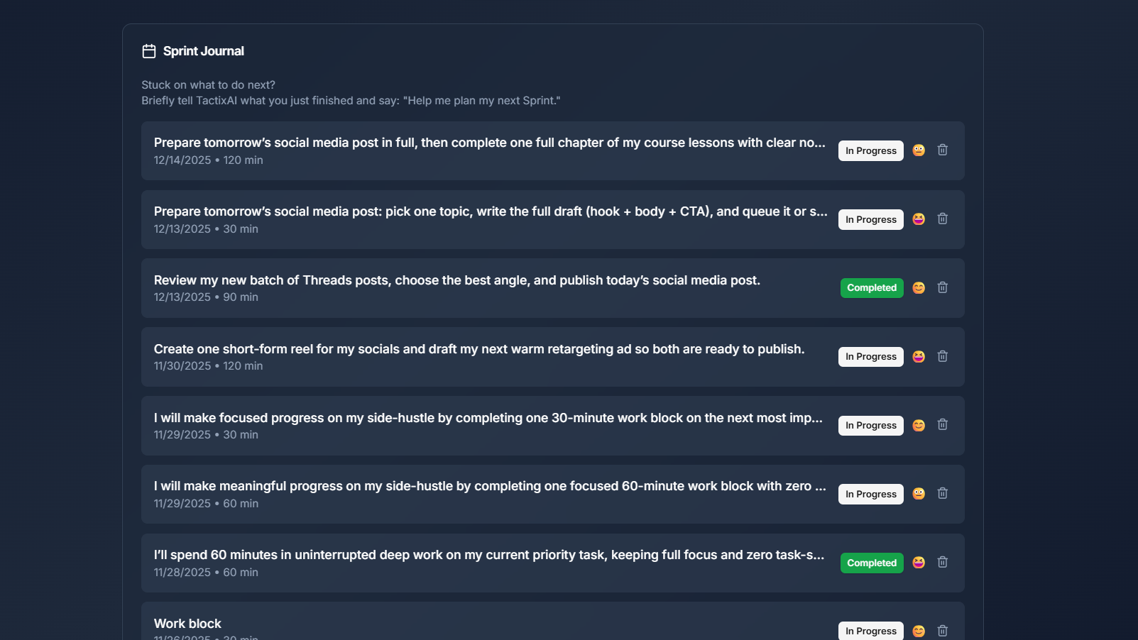 Your AI coach that turns “I should work” into one clear Sprint plan